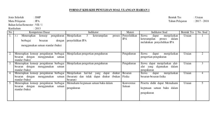 Contoh Format Kisi Kisi Penulisan Soal / Uji Kompetensi Semester I Satu Tahun Pelajaran 20102011 : Sdn muara iii alokasi waktu :. Smp kelas vii/ semester 1. No kompetensi dasar indikator kelas/ materi indikator soal taksonomi bentuk tes no soal pencapaian kompetensi smt 1. Sdn muara iii alokasi waktu : Demikianlah info terbaru terkait kurikulum 2013 k13 dengan judul contoh soal uraian kisi kartu dan soal pilihan ganda pembuatan soal k13 sdmi. Menentukan pasangan yang tepat pada tabel contoh kegiatan dan.